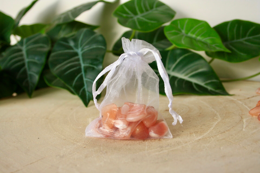Krachtzakje Organza met Kleine Stukjes Carneool AA Kwaliteit