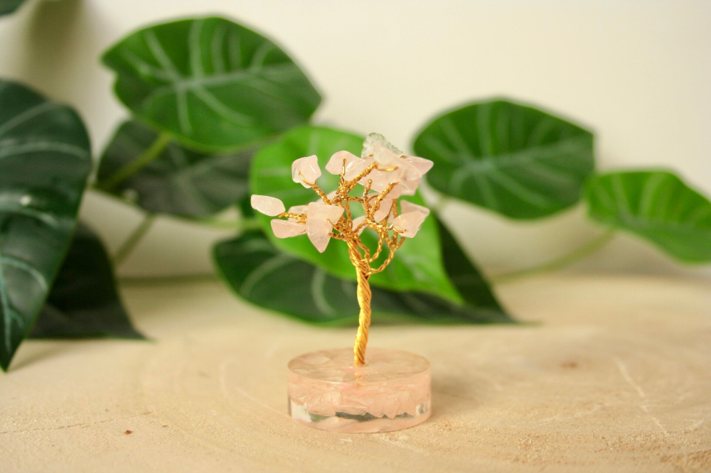 Drie redenen om een Edelsteenboompje met Rozenkwarts Blaadjes te kopen en in je leefruimte te plaatsen: