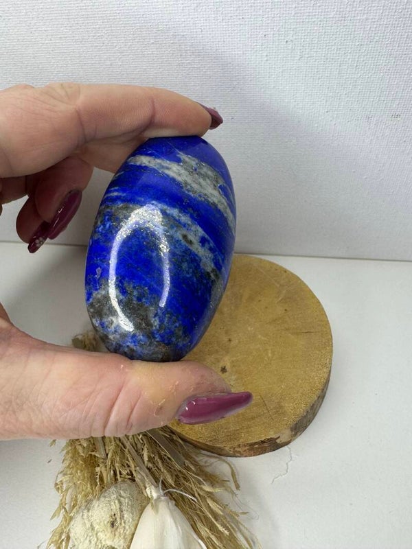 Je ontvangt de Lapis Lazuli Jumbo steen zoals afgebeeld, met zijn diepe blauwe tinten die een gevoel van kalmte en wijsheid uitstralen.