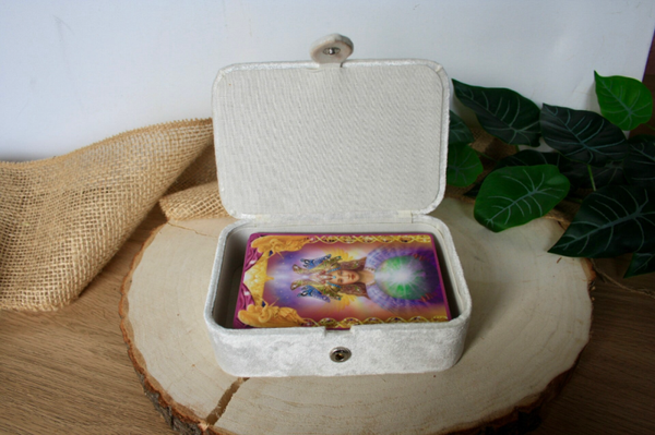 - Tarotdoos: Gebruik het doosje om je tarotkaarten netjes en beschermd op te bergen.
