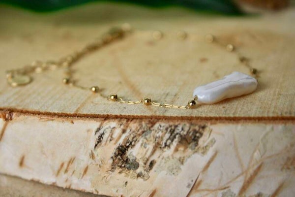 Gouden Roestvrij Stalen Armband met Zoetwaterparel – Tijdloos & Spiritueel ✨