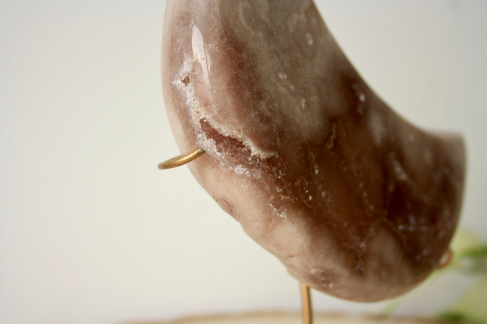 Materiaal: Natuurlijke Roze Amethist, handgeslepen en geplaatst op een stevige standaard.